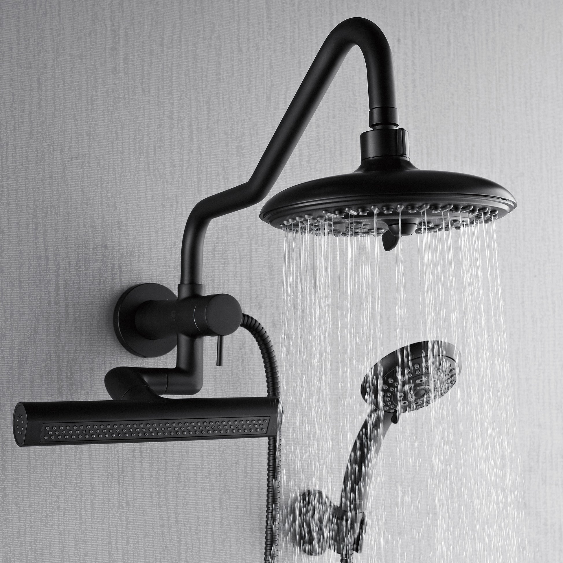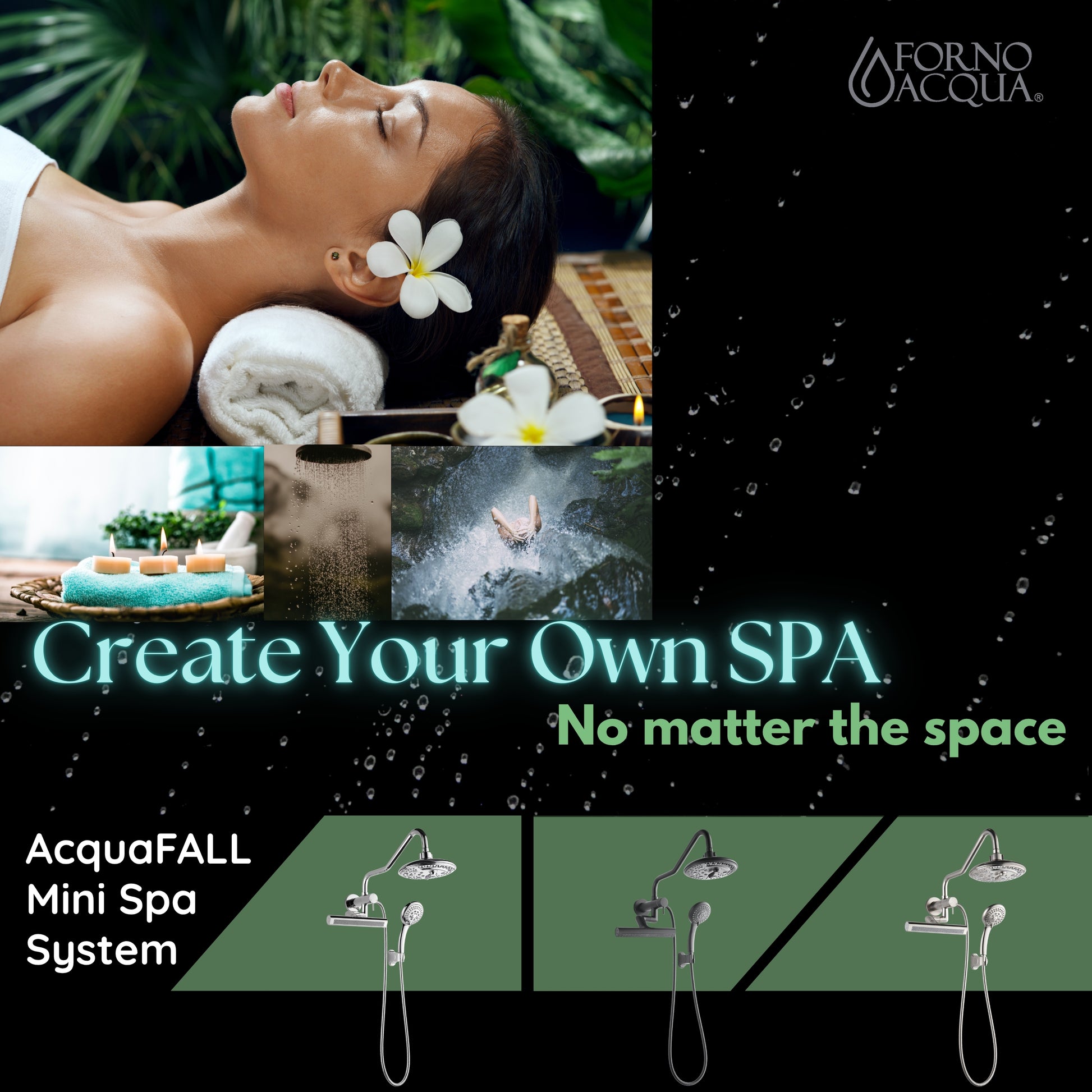 Forno Acqua AcquaFALL Mini 8 Inch Shower Head, Matte Black Finish, Overhead Rainfall Shower, Handheld Shower Head, Body Jets, 2.5 GPM Flow Rate