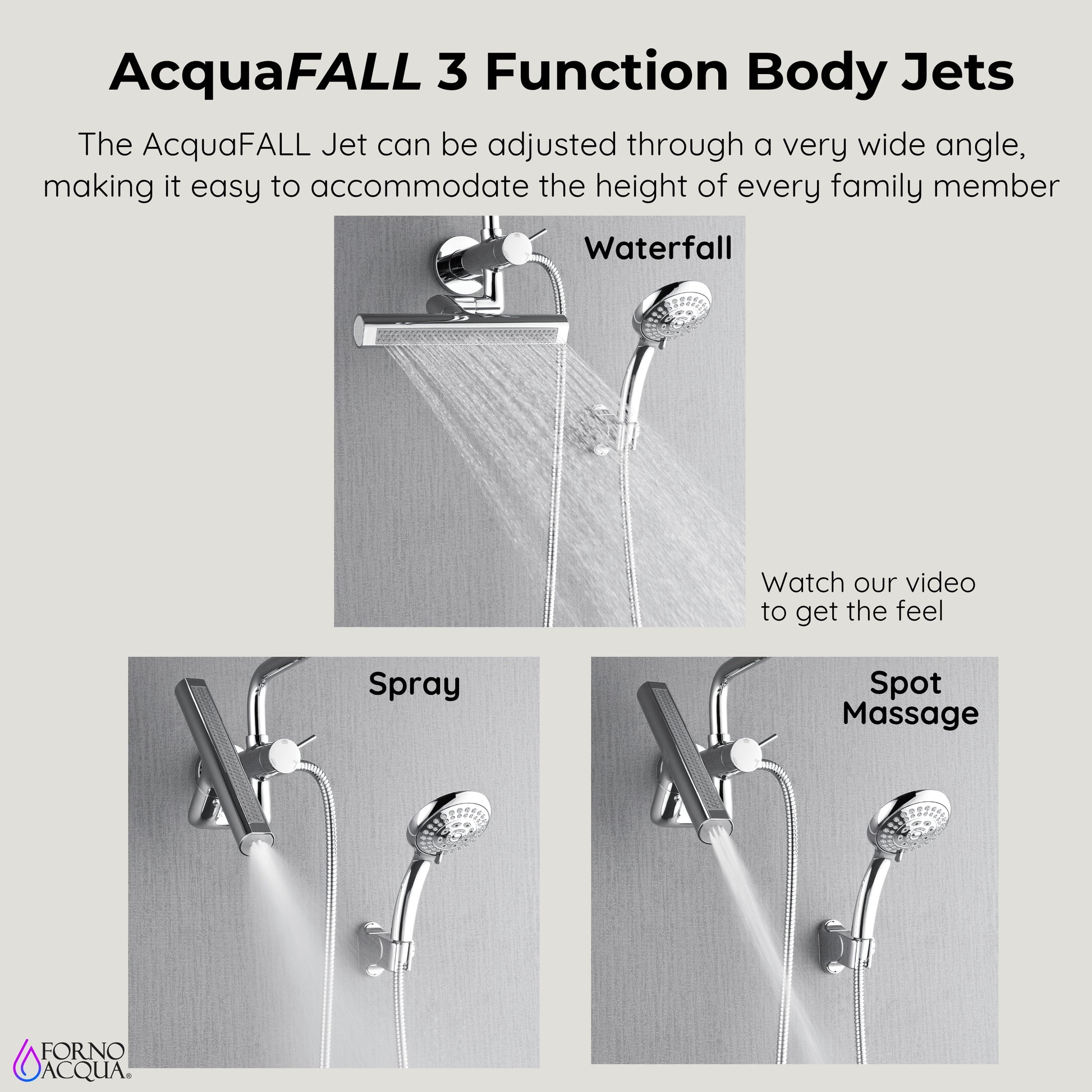 Forno Acqua AcquaFALL Mini Shower Head, Polished Stainless Steel Finish, Overhead Rainfall Shower, 7 Way Diverter, Handheld Shower Head, Body Jets, 1.8 GPM Flow Rate