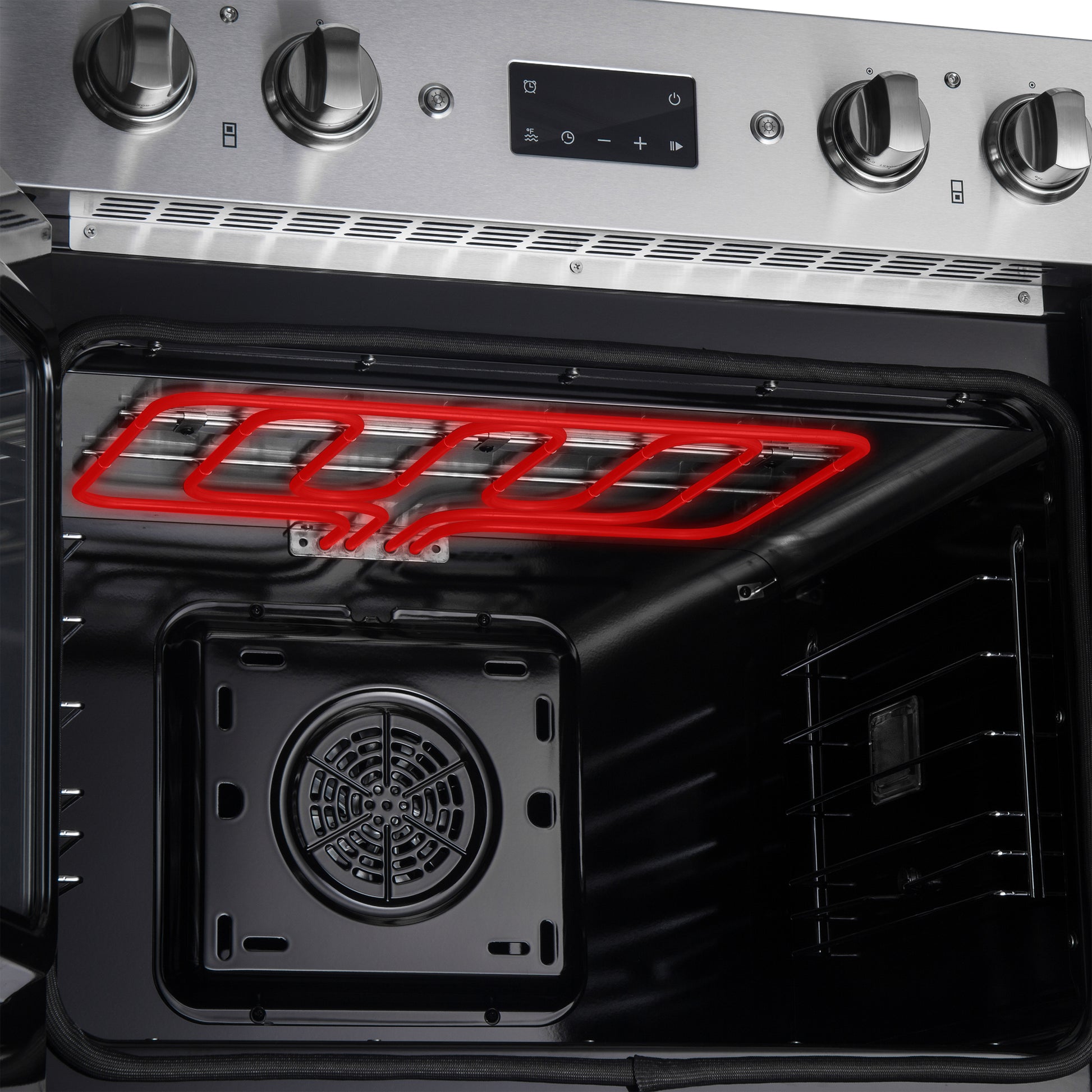 * Mechanical control knobs offer precise, hands-on cooking, letting you easily select functions and temperature with a classic, reliable feel.