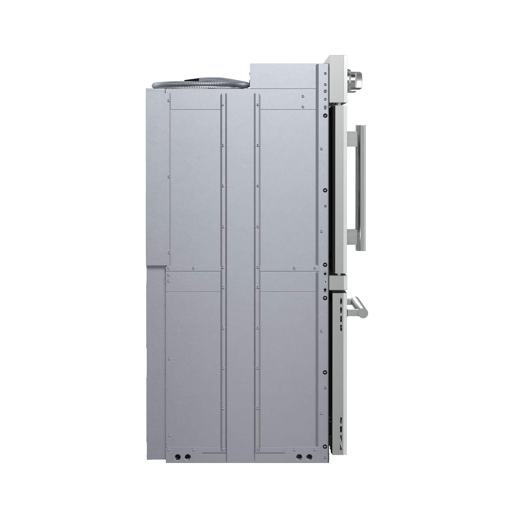 * A sleek stainless steel finish with pro-style handles and durable zinc-coated knobs adds a touch of elegance and durability.
