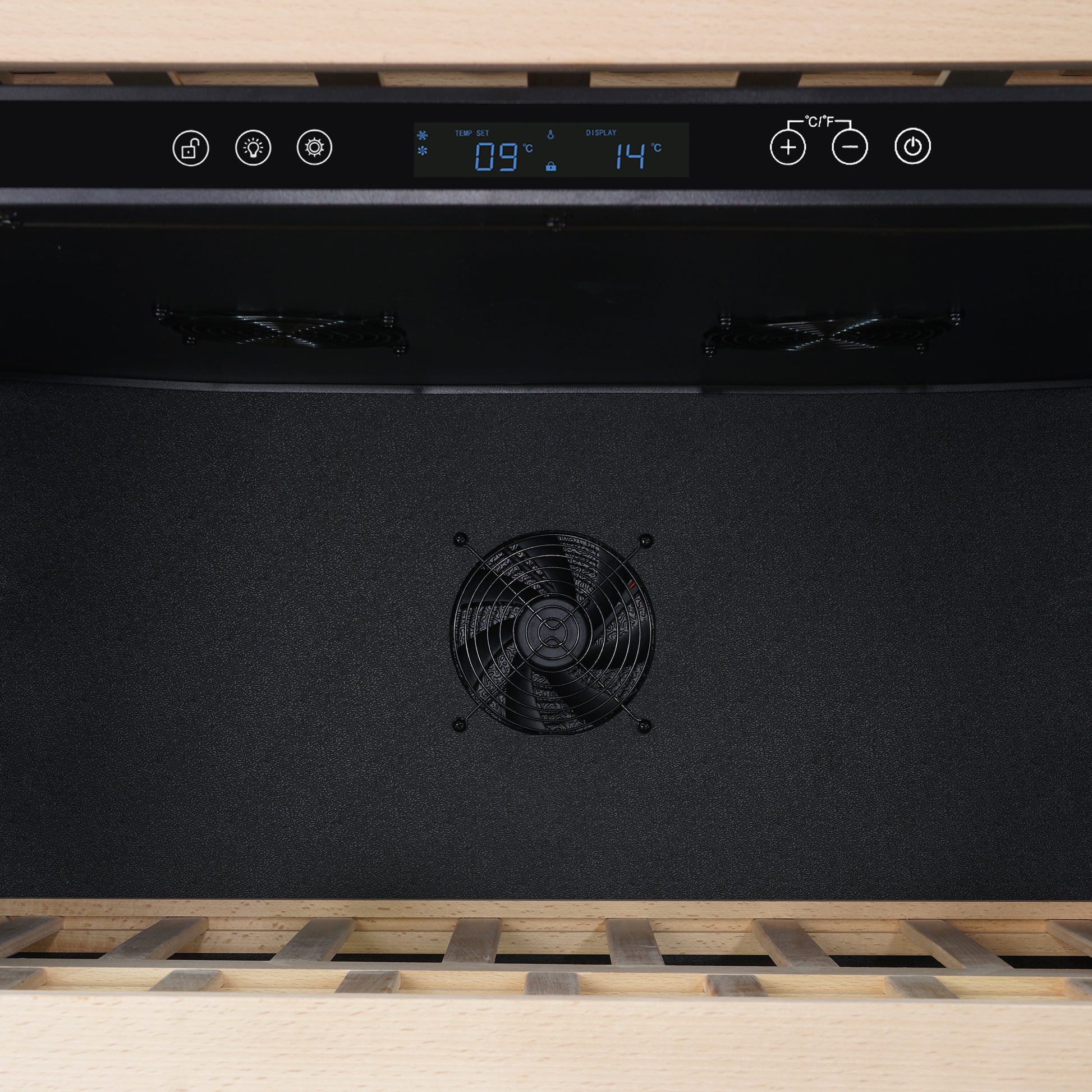 * Ten telescopic shelves in each wine zone, providing space for 75 bottles per zone, ensuring easy access and organized storage.