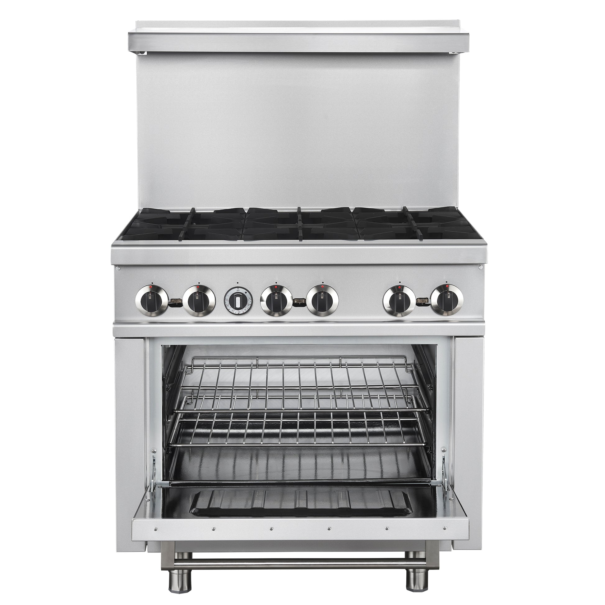 * High-Output Burners: 6 open burners, each delivering 30,000 BTU for powerful, high-performance cooking.