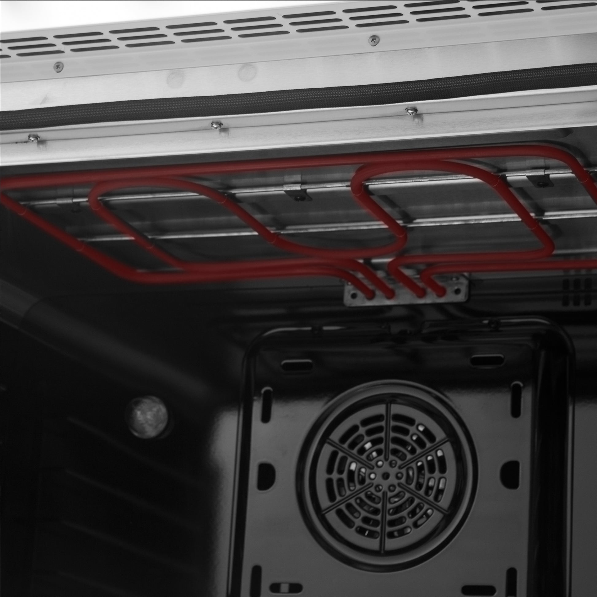 * 5.36 cu.ft. true convection oven powered by 6,300 watts for even heat.