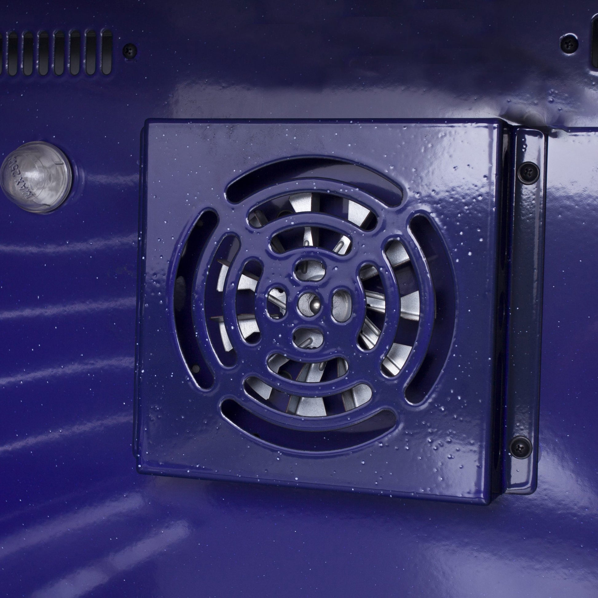 * Speckled blue enamel oven of 5.36 Cu.Ft with convection fan & 30,000 BTU Total Broil and Bake output