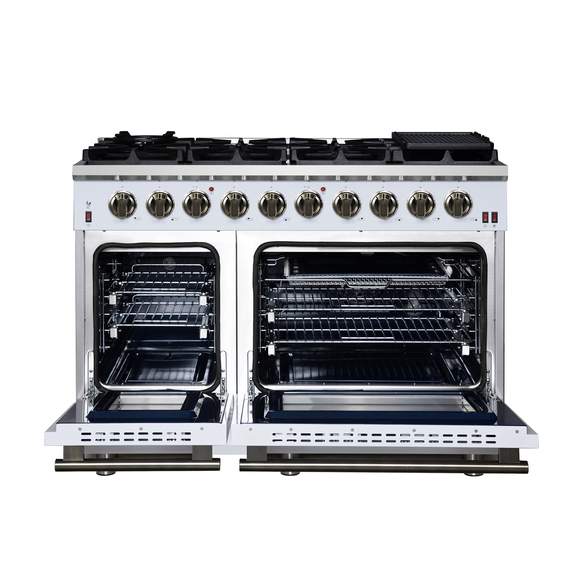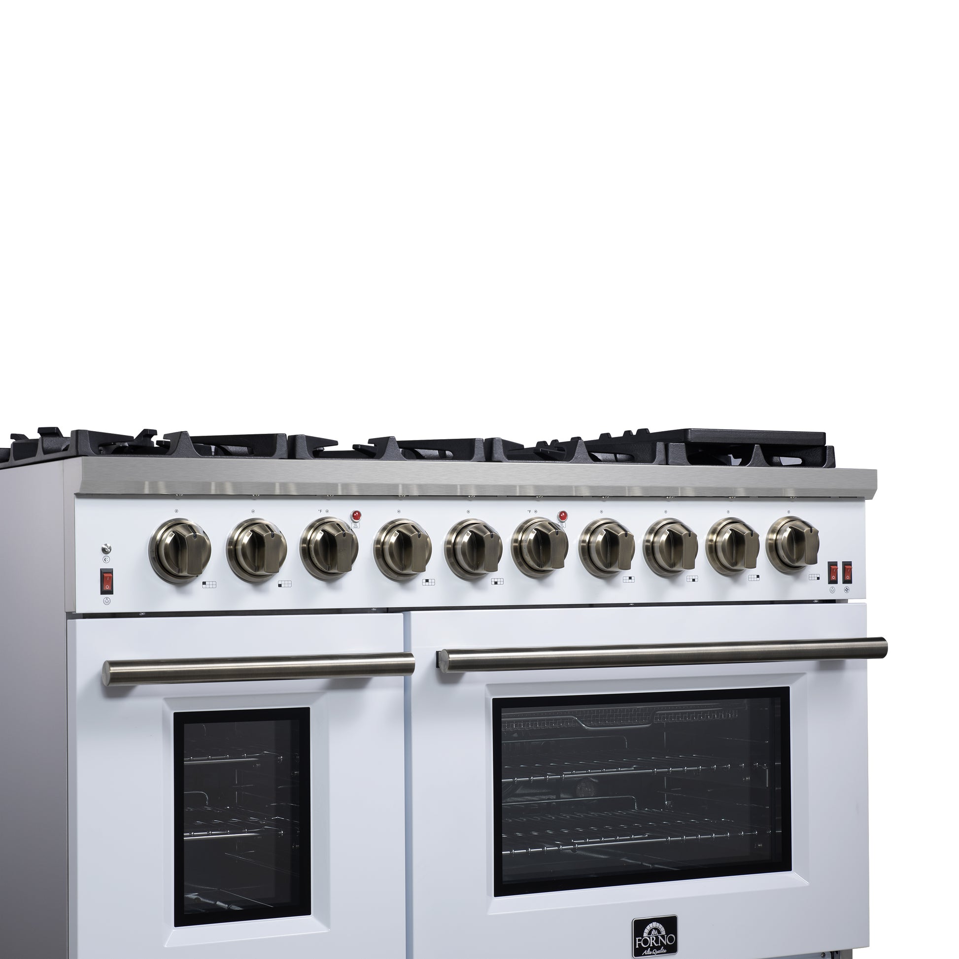 Forno Massimo 48-Inch White Freestanding Gas Range, 8 Burners, True Convection Oven