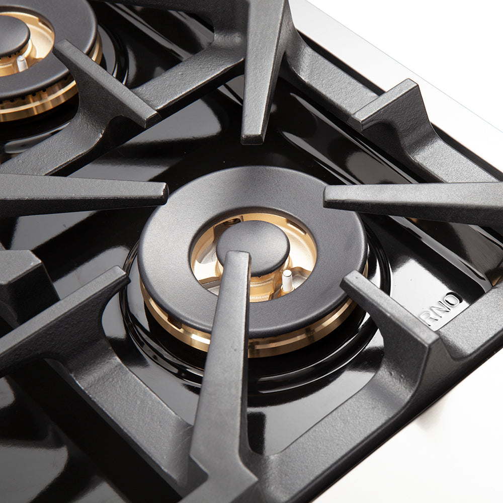 * Range: Sealed Dual-Ring Brass Burners can achieve high heat searing or delicate simmering control