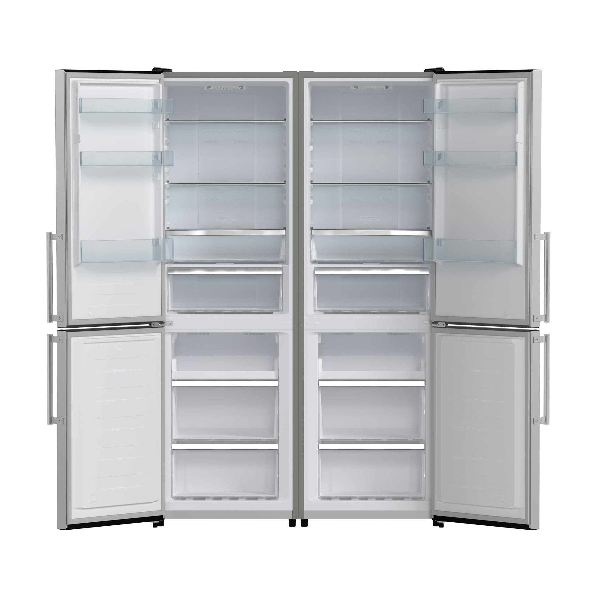 * Bottom Freezer Refrigerator: Adjustable glass shelves and multiple drawers for flexible storage options.