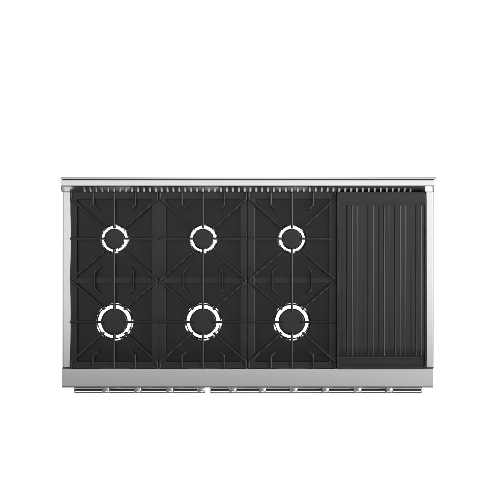 * Range: Continuous cast iron grates for stable cookware mobility and even heat distribution.