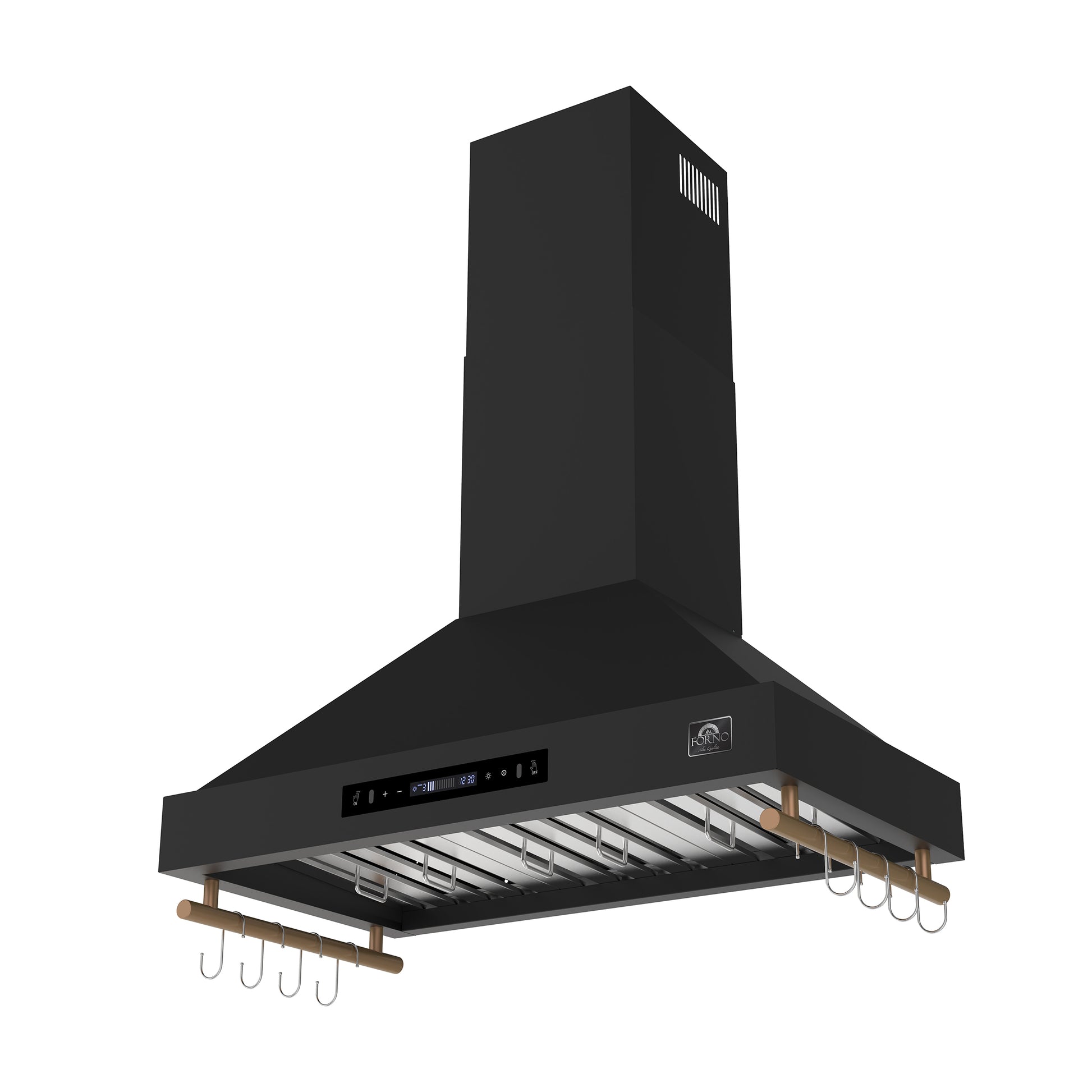 Forno Venezia 36 Inch Wall-Mounted Range Hood in Black with Touch Controls and Baffle Filters