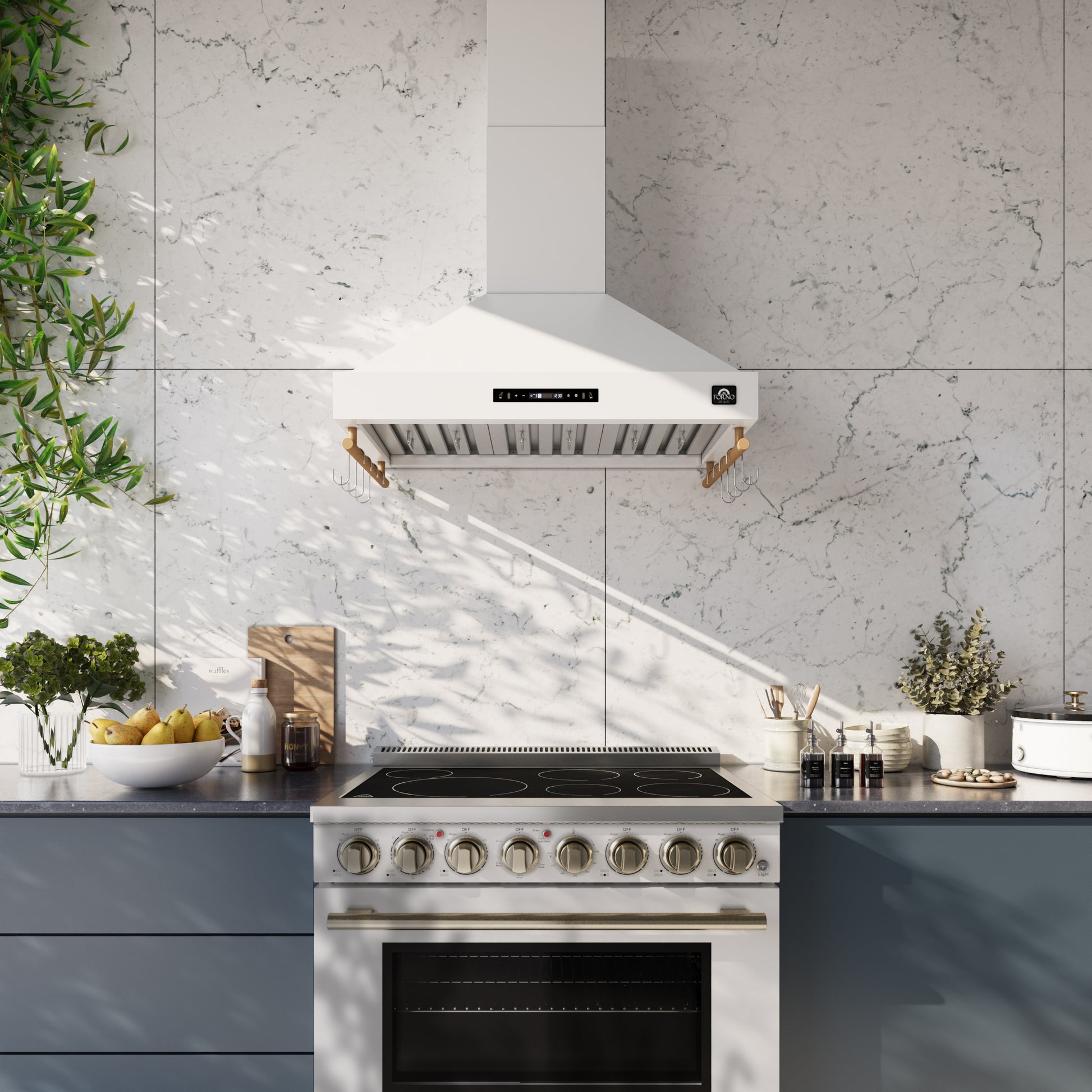 Forno Venezia 36 Inch Wall-Mounted Range Hood in White with Touch Controls and Baffle Filters