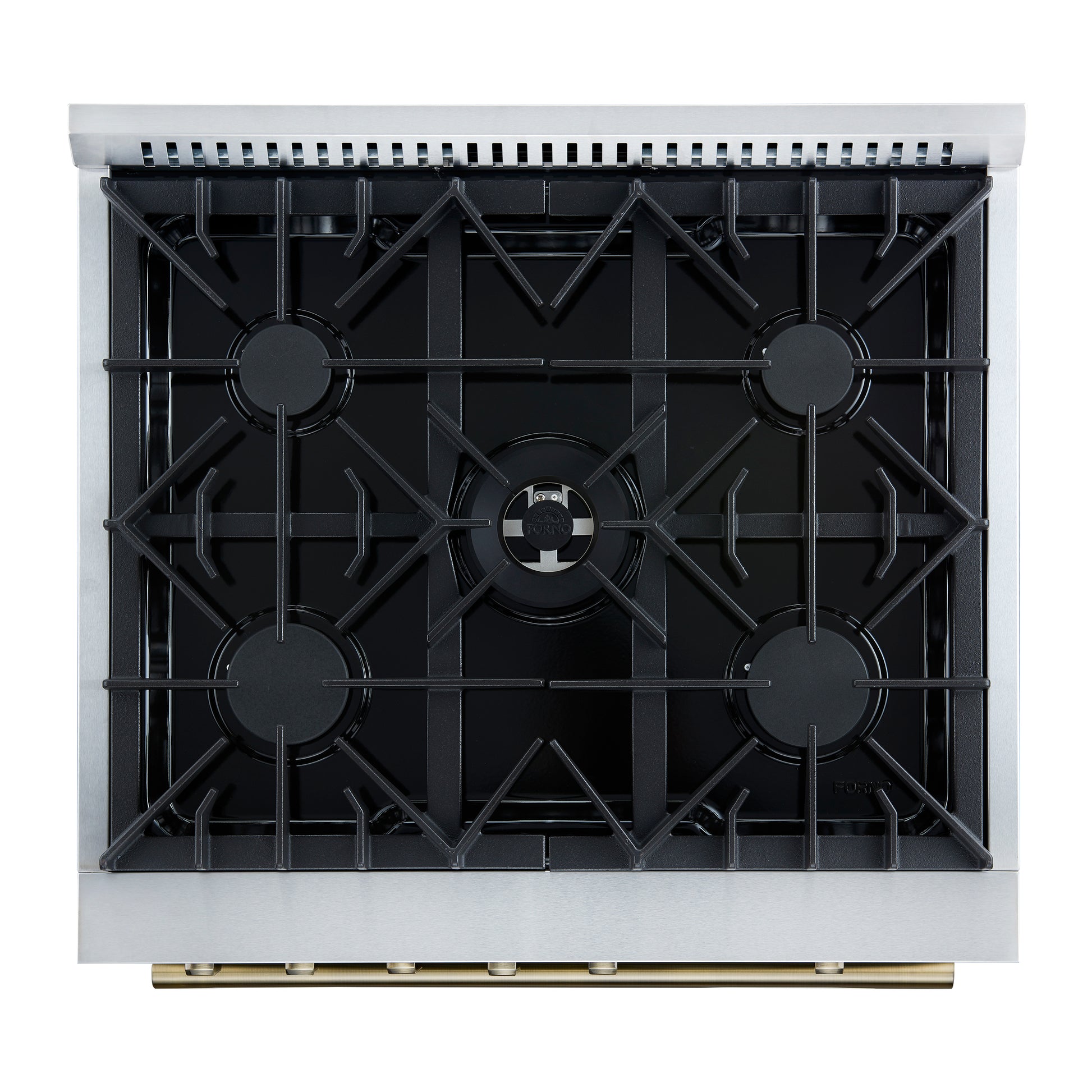 Giovanni 30-inch Gas Range Black & Antique Brass Design, 5 Burners 67,000 BTU, 4.32 cu.ft. Convection Oven