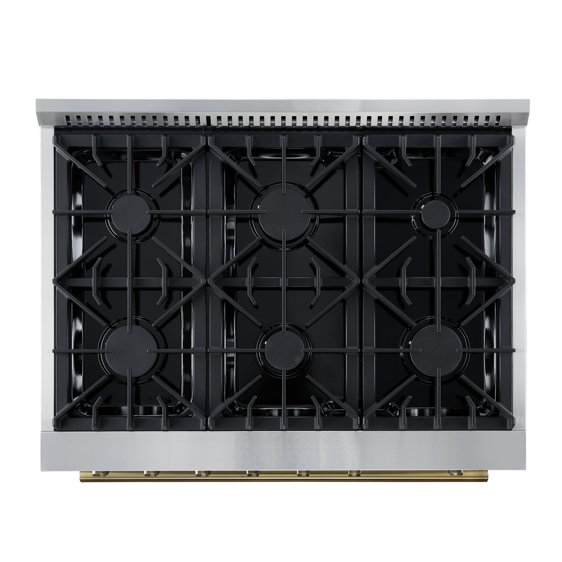 Marco 36-Inch Gas Range Black & Antique Brass Design, 6 Burners 67,000 BTU, 5.36 cu.ft. Convection Oven